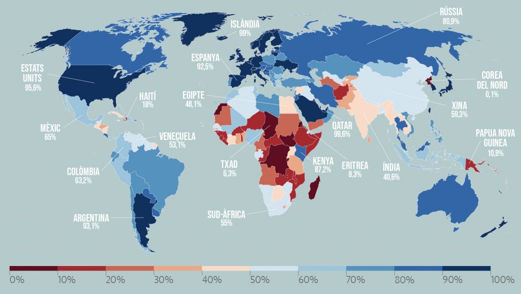 Internet i les xarxes socials han canviat la forma de relacionar-nos, de treballar i fins i tot de divertir-nos… però les noves tecnologies no han arribat a tothom. Actualment hi ha més de 7.000 milions de persones al món, però només la meitat té accés a la xarxa. T’expliquem les desigualtats d’internet en aquesta infografia.